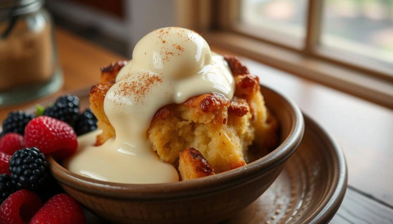The sugar’s role is to sweeten, but it also helps to caramelize the edges, creating a golden crust that’s a visual and textural delight. The sugar dissolves into the milk and eggs, forming a smooth custard base. If you prefer a lower‑sugar version, try substituting honey or maple syrup; the result will be slightly different but still delicious. The final flourish is the sauce, a simple vanilla glaze that coats the pudding like velvet. This sauce is optional but adds an extra layer of decadence. When you drizzle it over the warm pudding, the sauce melts into the custard, creating a silky finish that’s impossible to resist.