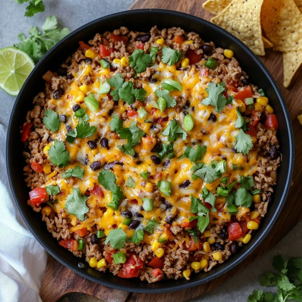 When the skillet sizzles, the air fills with a smoky cumin aroma that makes my nose do a happy dance. The ground turkey browns to a golden brown, and the onions start to caramelize, releasing a sweet, almost caramel-like scent that makes my mouth water. The rice, when added, absorbs the savory broth and spices, turning into fluffy, fragrant grains that feel like a soft blanket of flavor. The final touch—lime juice, fresh cilantro, and a sprinkle of cheddar—adds a bright, tangy contrast that lifts every bite. It’s the kind of meal that makes you forget you’re even cooking, because the flavors are so effortless and harmonious.